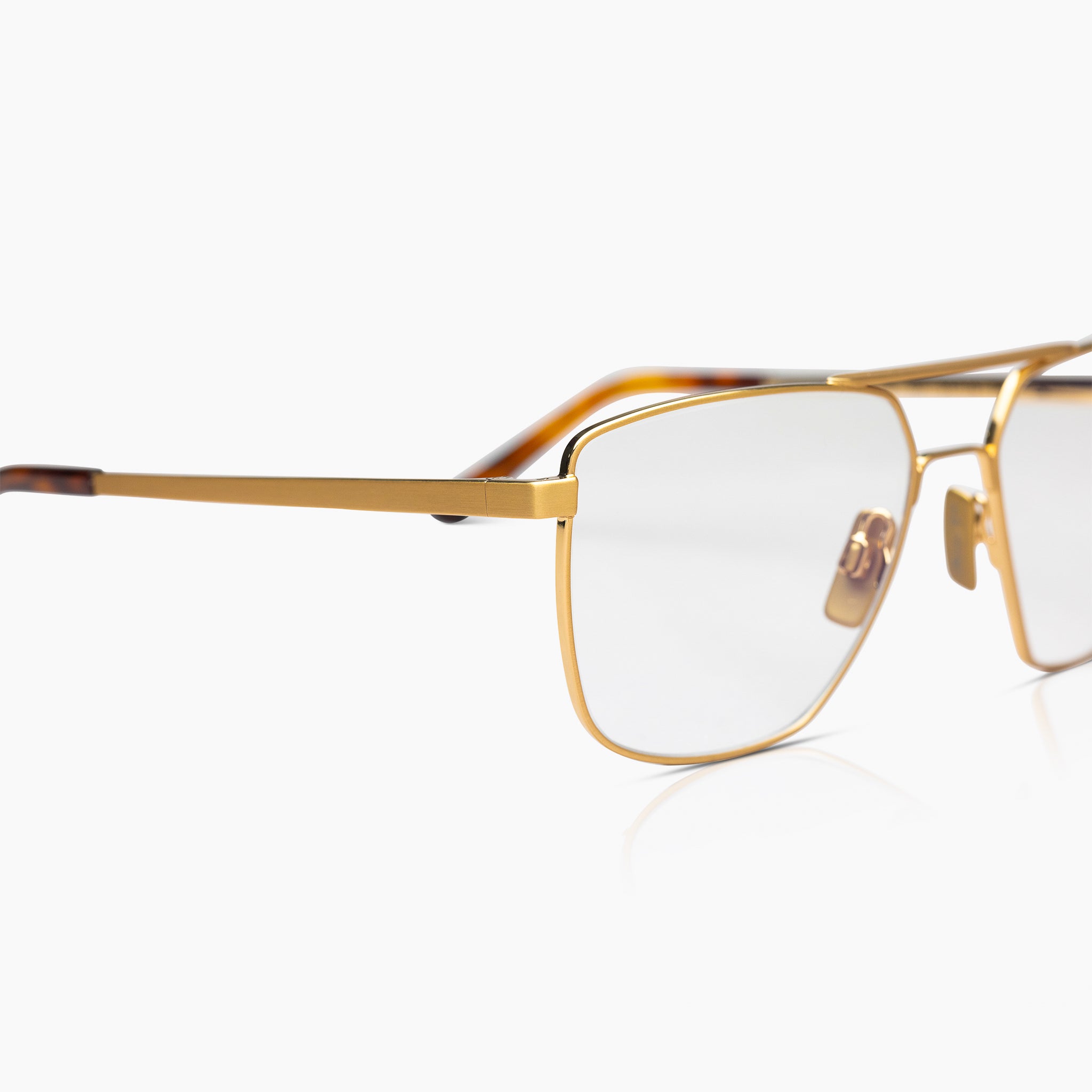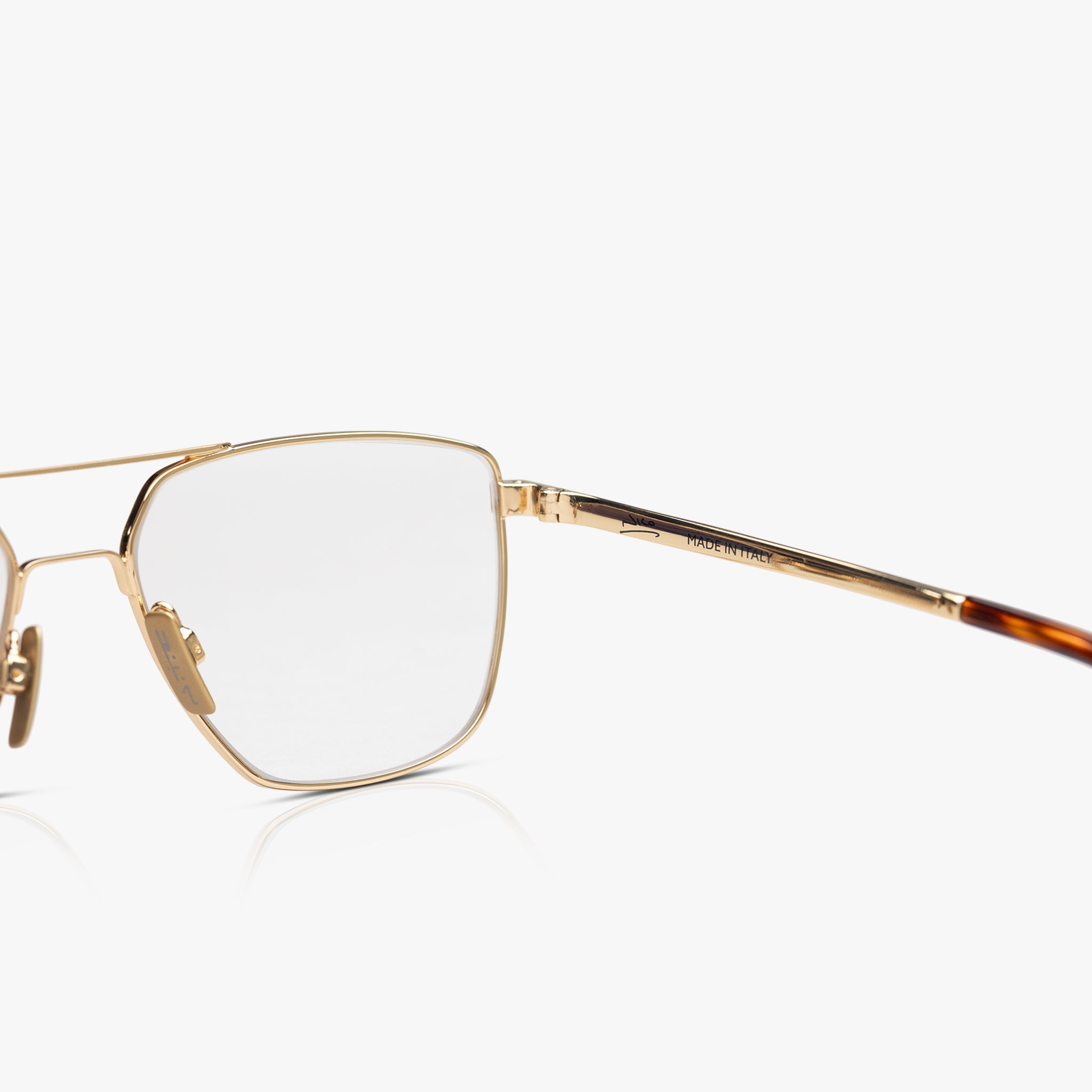 This NICO aviator is defined by sharp lines and subtle kinks, inspired by the military styles of the sixties. A wide brow bar brings the delicate lines together and the narrow stance leans into the retro character. Thick temples reinforce its presence, while brushed and polished details add depth to the silhouette.
